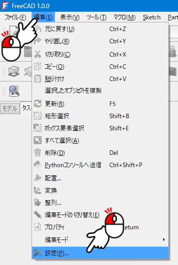 | 〇 起動時のワークベンチ設定(FreeCAD起動時のワークベンチを変更できます) | |||||||||||
